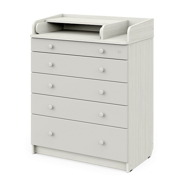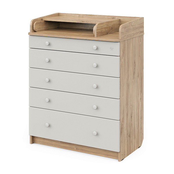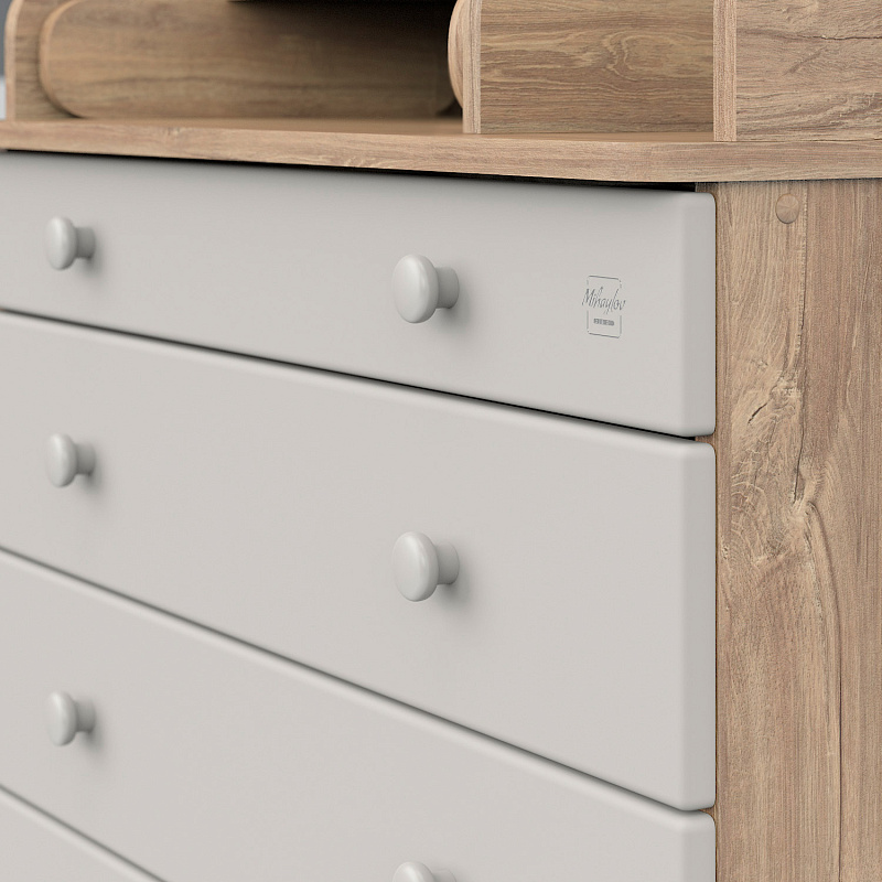 Современный детский комод в элегантном стиле и с большим выбором моделей украсит интерьер любой детской комнаты. Выделяется комбинацией контрастных оттенков благородной древесины с нежными, приятными на ощупь, фасадами из МДФ белого и серого цветов.