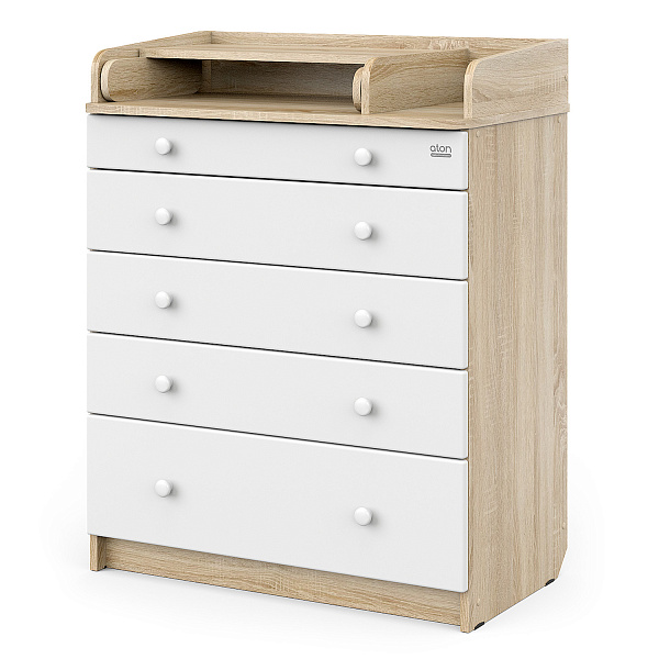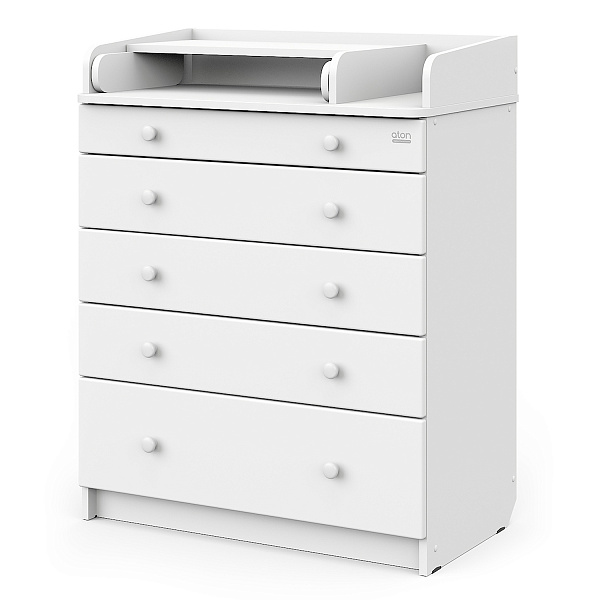 Комод “Атон Макс” вместительный. Нижний ящик имеет большую в сравнении с другими ящиками глубину. Верхний оснащен органайзером, чтобы можно было с удобством сортировать детские вещи (6 отделений).