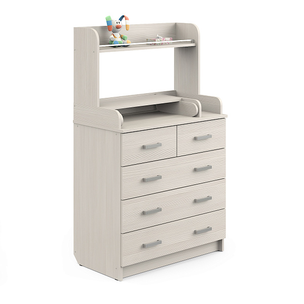 Комод выделяется надстройкой с полкой и солидным выбором оттенков. Выполнен из ЛДСП, тщательно обработан и отделан для полной безопасности ребенка. Впишется в любой интерьер детской комнаты, спальни или уголка в жилой комнате.